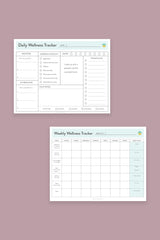 The first page includes a daily wellness tracker that you can use every morning to start the day off on a positive note. The second page is a weekly wellness tracker that can be used to track your progress and wellness habits throughout the week.